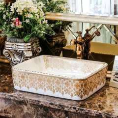 厂家供货美佳台上盆方形 | 大卫生间洗手盆台上盆陶瓷欧式风692#