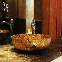 厂家供货美佳碗型陶瓷洗脸盆台上盆金色 | 艺术浴室大洗手盆494#
