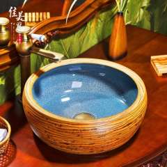 厂家供货美佳纯手工雕刻艺术台上盆 | 景德镇卫浴洗脸盆地中海673