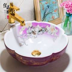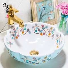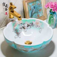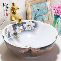 美佳中式卫生间台盆洗手艺术盆台上盆花瓣景德镇洗面盆1053
