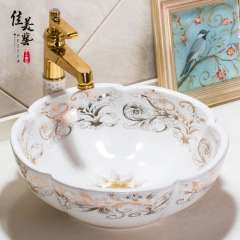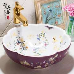 美佳中式卫生间台盆洗手艺术盆台上盆花瓣景德镇洗面盆1077