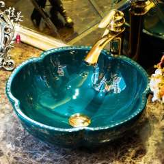 美佳中式卫生间台盆洗手艺术盆台上盆花瓣景德镇洗面盆混批989#