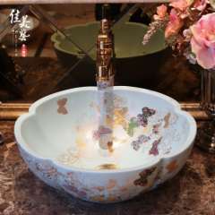 美佳中式卫生间台盆洗手艺术盆台上盆花瓣景德镇洗面盆混批1047
