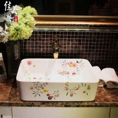 现代韩式可爱艺术台上洗手盆陶瓷 | 浴室洗脸盆台上景德镇方形317#
