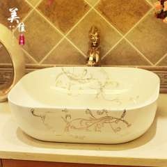 一件起批美佳 | 精品陶瓷台上盆卫生间洗脸盆印花欧式洗手盆572#