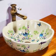 景德镇厂家批发美佳卫生间洗手台台上盆艺术陶瓷洗面盆花瓣1022