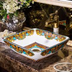 美佳混批代理景德镇洗手盆 | 陶瓷复古洗脸盆小方形 | 艺术台上盆1241
