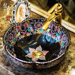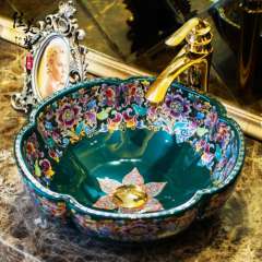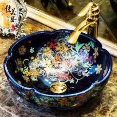 美佳欧式卫生间台盆洗手艺术盆台上盆花瓣景德镇洗面盆混批1156