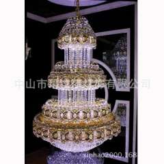 工程高档水晶灯具 | 楼梯水晶吊灯中山灯饰非标酒店灯具厂家订做