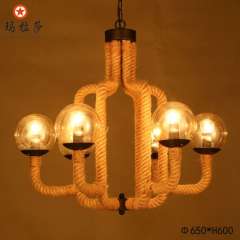 厂家批发复古客厅餐厅铁艺 8198 直销北欧个性创意布艺麻绳吊灯