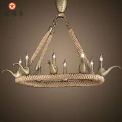 中山灯饰咖啡厅酒吧铁艺复古复式楼吊灯 | 美式乡村小鸟麻绳吊灯