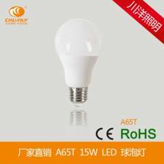 厂家直销 15W LED球泡灯A65高导热塑包铝球泡E27