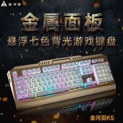 金河田K5键盘 | 悬浮七彩背光有线游戏键盘 | 金属拉丝面板机械手感
