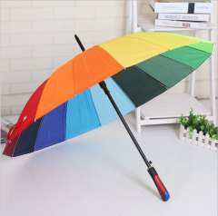 16K韩国创意彩虹伞 | 长柄自动雨伞 | 定制印刷广告厂家七彩直柄雨伞