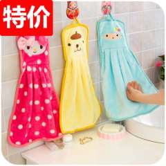 T 方形卡通头法兰绒挂式不掉毛擦手巾 | 厨房加厚刺绣吸水抹布批发