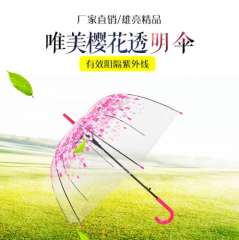8K长柄自动塑料透明雨伞 | 日系樱花透明伞 | PVC创意环保礼品伞