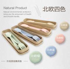小麦秸秆勺子筷子叉套装 | 韩国便携餐具套装 | 儿童勺叉三件套