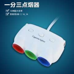 带开关一拖三点烟器汽车用一分三车充usb车载充电器T03-1B\2108