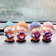 可爱love帽子猪车载摆件卡通树脂汽车内饰礼物套装价T6-3B\1084-1