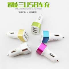 汽车用品车载充电器铝边三USB接口3.1A带线车充T02-1B\5144