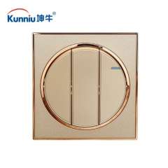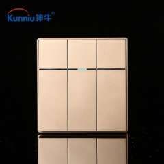香槟金三位三开双控开关 | 86型暗装开关插座面板3开三联双控开关