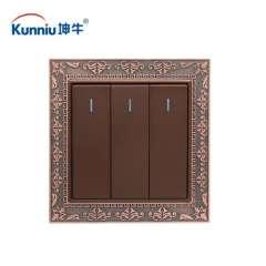 三位双控电源墙壁开关 | 86型暗装三开双控开关 | 3开双控古铜色开关