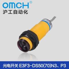 沪工自动化圆柱型光电开关E3F3-DS50(70)N3, P3 PNP/NPN常开常闭