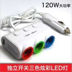 车载点烟器 | 一分三 | 双usb接口 | 多功能带开关 | 一拖三点烟器 3.1A