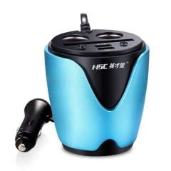 英才星 | 车载能量杯 | 带开关车载充电器双USB一拖二点烟器 HSC-200