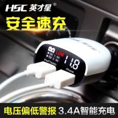 英才星HSC-200D一拖二点烟器车载充电器带开关2USB带电压监测