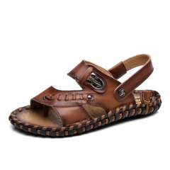 新款手工男士凉鞋真皮透气沙滩鞋 | 夏季头层牛皮男皮凉鞋一件代发