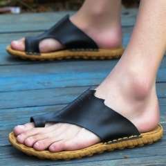 批发新款真皮凉拖鞋男款夏季人字拖 | 男士韩版潮夹趾牛皮拖鞋大码