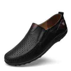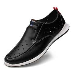 韩版夏季潮男休闲鞋真皮驾车鞋一脚蹬套脚男鞋透气鞋镂空沙滩鞋