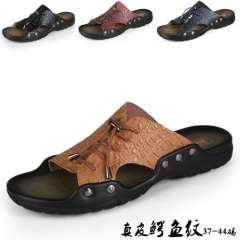 真皮凉拖鞋 | 夏季男士拖鞋 | 韩版潮流 | 男 | 个性时尚系带沙滩半拖鞋