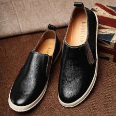 2015秋冬款圆头英伦时尚真皮商务纯色低帮鞋 | 大码套脚男休闲皮鞋