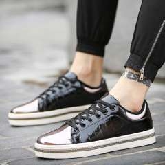 春季镜面男士潮鞋韩版厚底百搭休闲男鞋系带运动潮鞋漆皮亮面板鞋