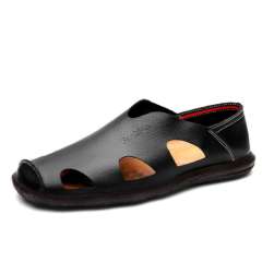 新款皮凉鞋男夏季真皮镂空洞洞休闲鞋中老年爸爸鞋男士凉皮鞋代发