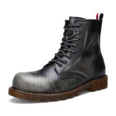 靴子男女秋冬平底低跟英伦马丁靴女真皮中筒女情侣真皮短靴机车靴