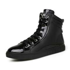 欧美秋季新款休闲高帮男鞋复古皮鞋漆皮中高帮休闲板鞋一件代发