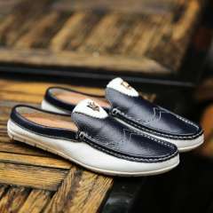 夏季男士半拖豆豆鞋男真皮包头软皮休闲时尚驾车鞋 | 潮
