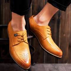 时尚布洛克尖头套脚皮鞋 | 男 | 英伦潮男低帮休闲鞋 | 发型师男鞋批发