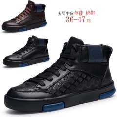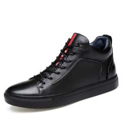 秋季高帮鞋男鞋工厂保暖休闲鞋加毛男士真皮高帮板鞋青年皮鞋代发