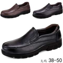 秋季新款男式休闲皮鞋头层真皮透气套脚商务休闲鞋38-50大码男鞋