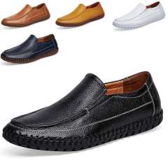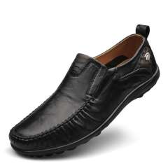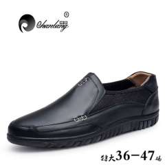新款手工缝制皮鞋男士休闲皮鞋 | 透气男鞋 | 韩版真皮大码套脚圆头鞋