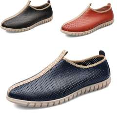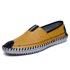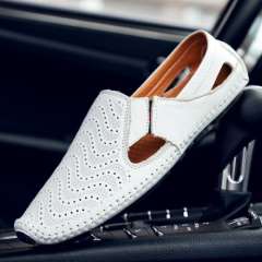 夏季真皮套脚男式休闲皮鞋男士镂空驾车鞋 | 韩版低帮透气洞洞男鞋