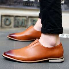 新款男士正装商务休闲皮鞋 | 时尚尖头鞋软皮套脚男鞋一件代发