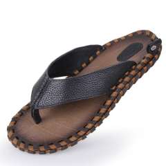 头层小牛皮手工凉拖鞋潮流个性沙滩鞋 | 男士夏季真皮人字拖鞋批发