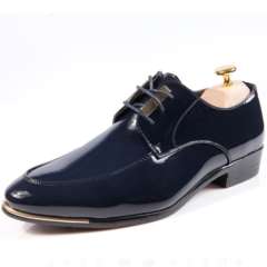 2015新款男式经典拼接休闲皮鞋 | 尖头英伦系带亮面真皮男式鞋子