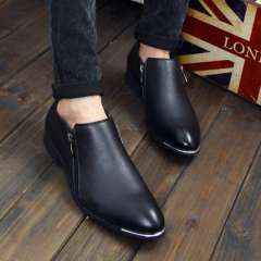 2015新款男士经典双拉链尖头真皮鞋 | 青春潮流时尚英伦休闲男单鞋