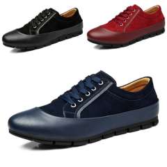 夏季休闲鞋男真皮 | 休闲透气防臭平跟缝制鞋 | 男式漆皮软底皮鞋子